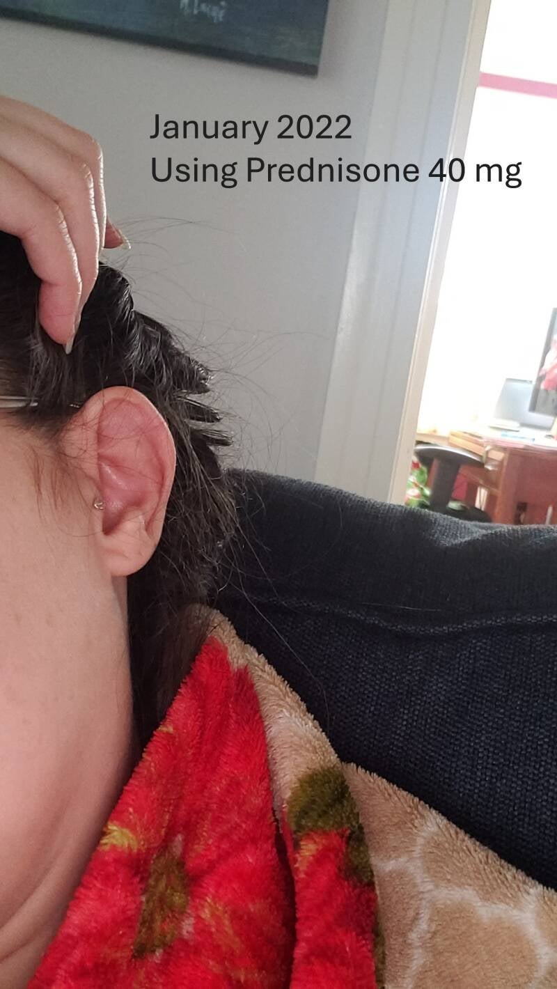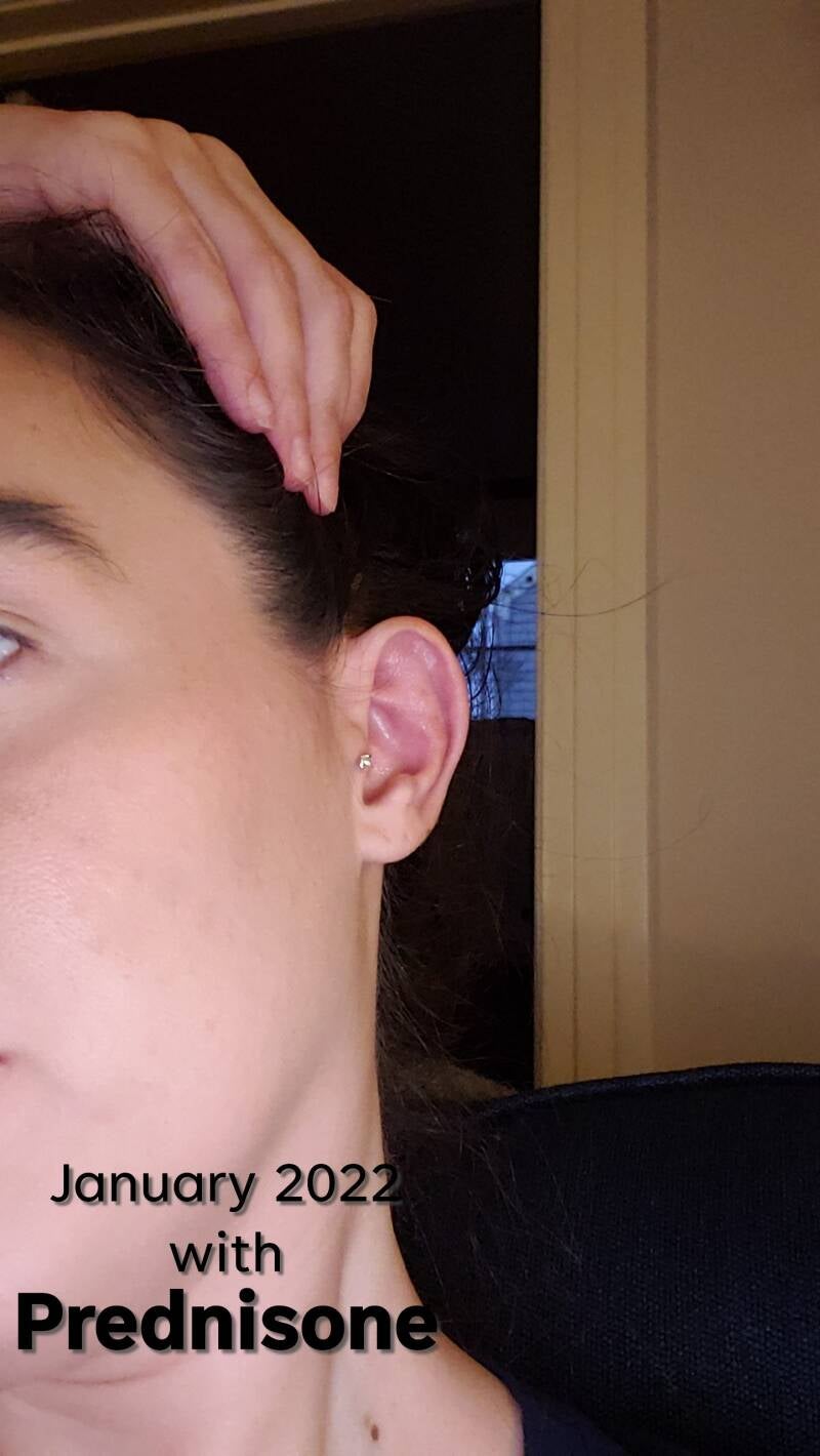 These are some photos when I was diagnosed with RP. You can see the changes that Prednisone did on me. The last photo shows a before and after to really see the difference.